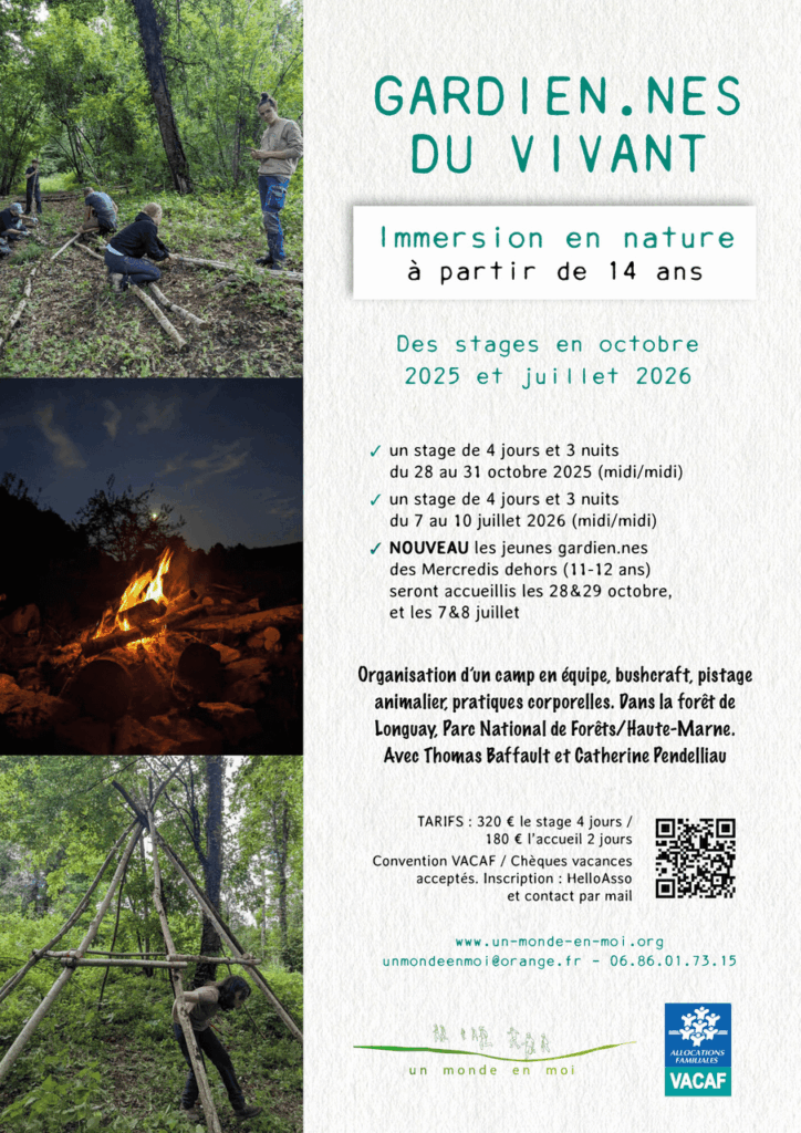 un stage de 4 jours et 3 nuits du 28 au 31 octobre 2025 (midi/midi)